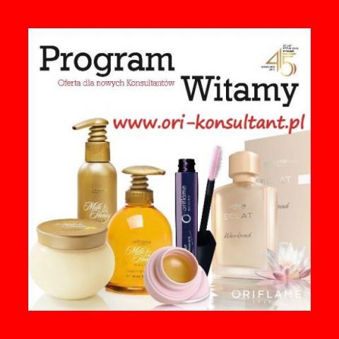 Poznaj korzyści płynące ze sprzedaży kosmetyków najwyższej jakości. Zarabiaj na sprzedaży kosmetyków, kupuj kosmetyki dla siebie taniej - 17 katalogów w ciągu roku. Brak minimalnej kwoty zamówienia, brak kar za nie złożenie zamówienia. Odroczony termin płatności za kosmetyki- 14 dni. Dla Nowych Konsultantów nagrody w programie Witamy o wartości 231zł -tusz do rzęs Wonder i krem Tender Care, zestaw Milk Honey, woda toaletową Eclat Weekend! Możesz budować własną grupę konsultantów i otrzymywać za to premię od 3-21% od sprzedaży w grupie! Dodatkowa oferta - suplementy diety - WELLNESS BY ORIFLAME. Zapisując się u mnie woda toaletowa o wartości 80zł w nagrodę!
