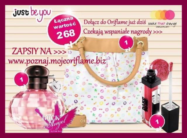 Dla Nowych Konsultantów nagrody w programie Witamy o wartości 268zł -Błyszczyk, Woda toaletowa Rock Angel,torba oraz próbki za 1zł!