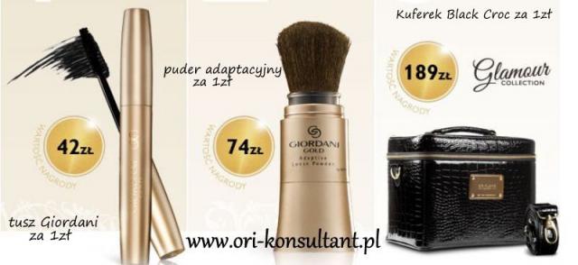 Dla Nowych Konsultantów wspaniałe nagrody w programie Witamy o wartości 305zł -Tusz do rzęs Giordani Gold Lash Fascination, Adaptacyjny puder pyłkowy Giordani Gold i szykowny kuferek Black Croc z Kolekcji Glamour, a także próbki za 1zł